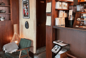 1960年代のノルウェーヴィンテージ家具が配された、落ち着いた雰囲気の店内。