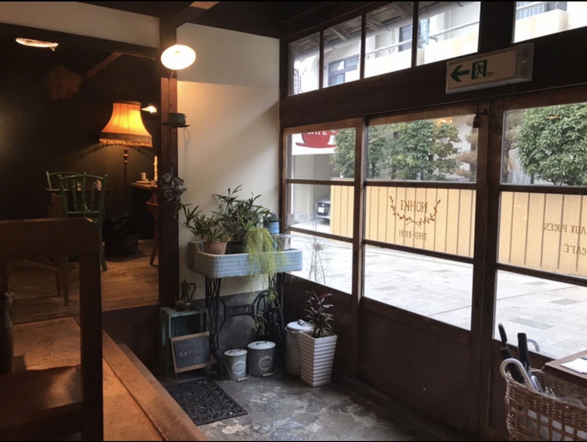 アンティーク家具が並ぶ、木の温もりを感じる落ち着いた店内