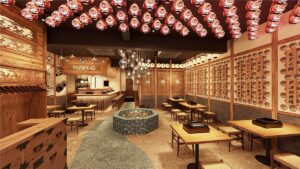 青森の伝統を感じる、和の趣あふれる広々とした店内の様子