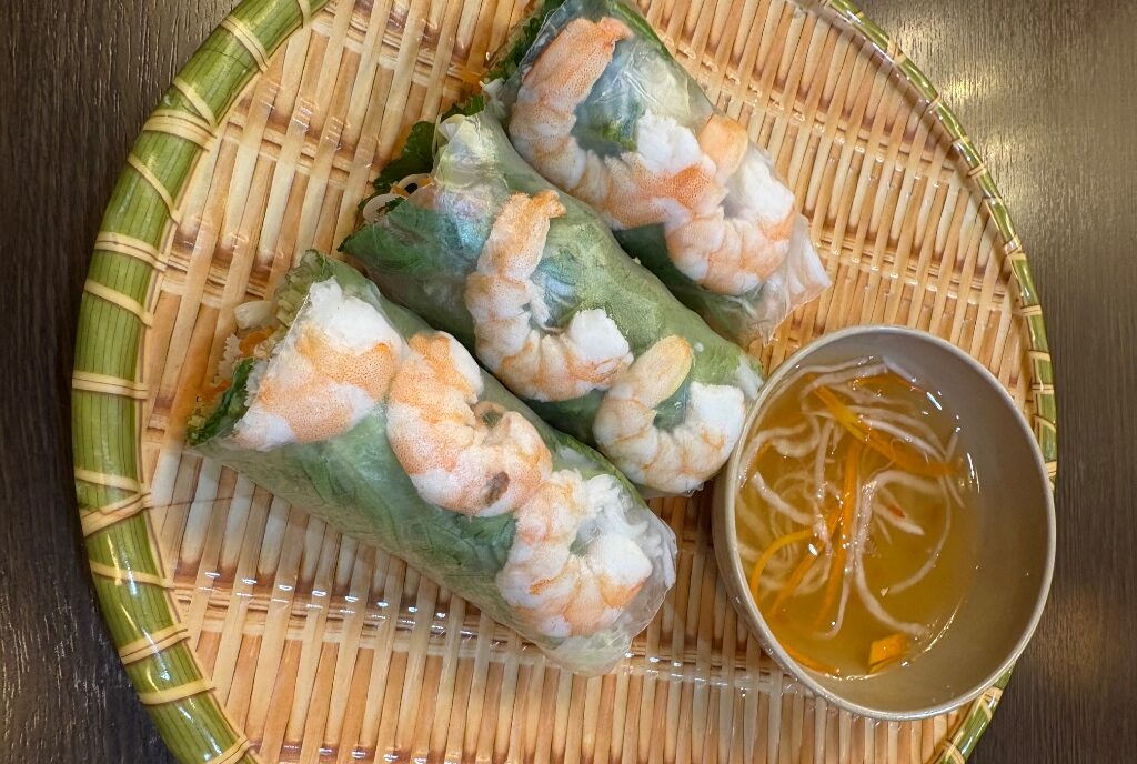 プリプリの海老が目を引く、彩り豊かな生春巻きです。