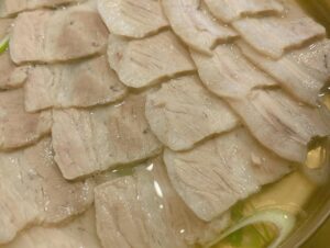 丁寧に盛り付けられた、透き通ったスープが美しい平壌冷麺