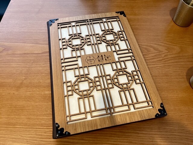 「설눈 ソルヌン」は、お店の外観はグレーと木目を基調としたモダンなデザインで、店内には温かい木目調のカウンター席が広がり、お一人様や少人数でも気軽に本格韓国料理を楽しめる空間です。