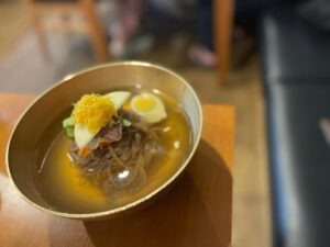 平壌冷麺は、透き通った深い味わいのスープとの調和は、一度味わうと忘れられません。冷麺には、あっさりとした水冷麺の他にも辛味が効いたビビン冷麺もあります。
