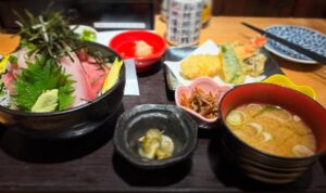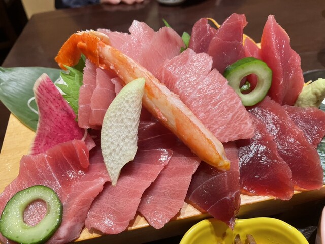 新鮮な魚をふんだんに使用したお刺身や、人気のマグロなどを使った丼物など、メニューが豊富に揃っています。特に、豪快に盛り付けられたお刺身は見た目も華やかで、魚本来の旨みをしっかりと楽しむことができます。