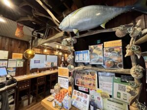 漁師小屋のような雰囲気で飾られた活気ある店内