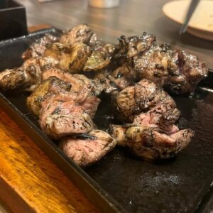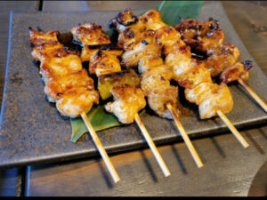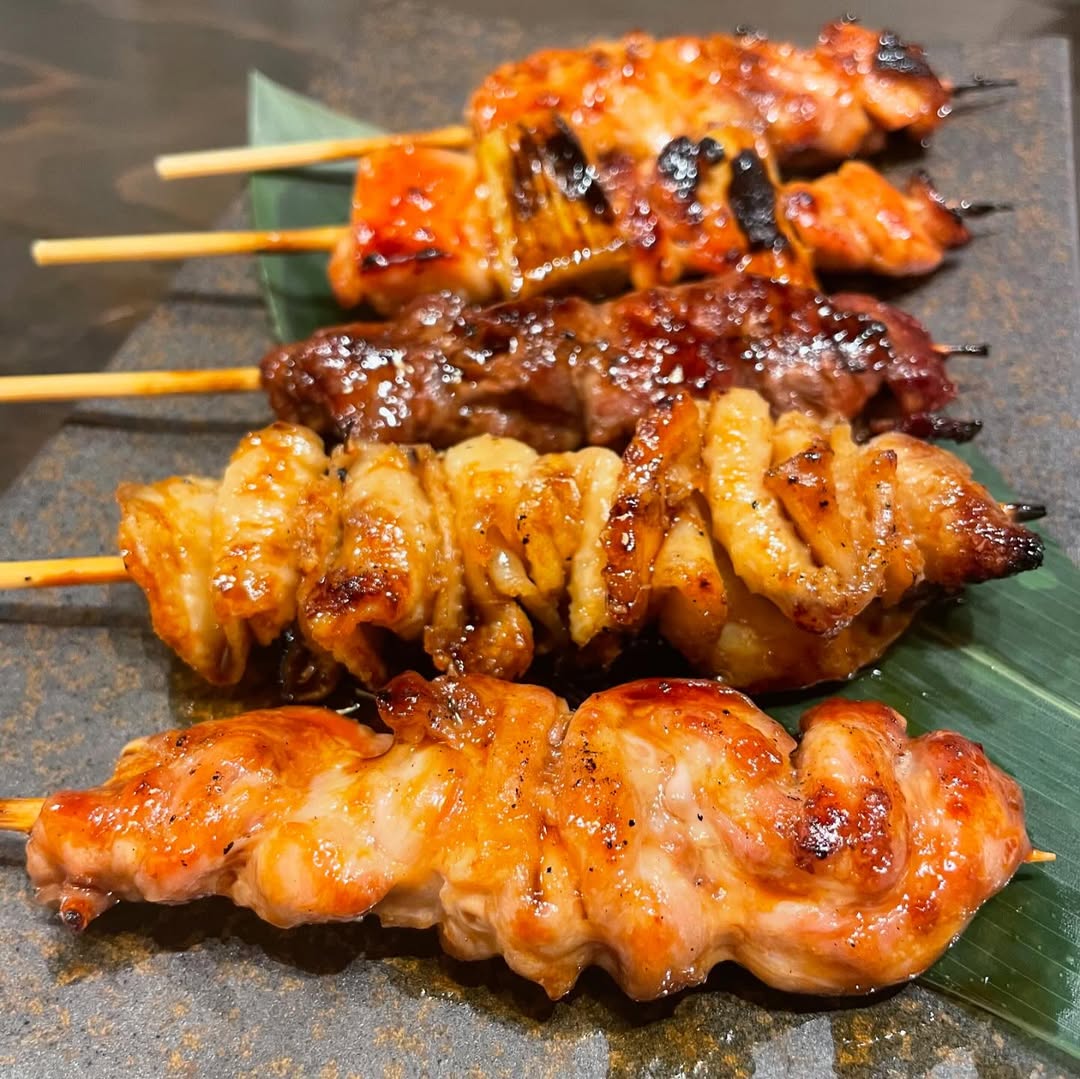 炭火で丁寧に焼き上げた、香ばしい地鶏の串焼き
