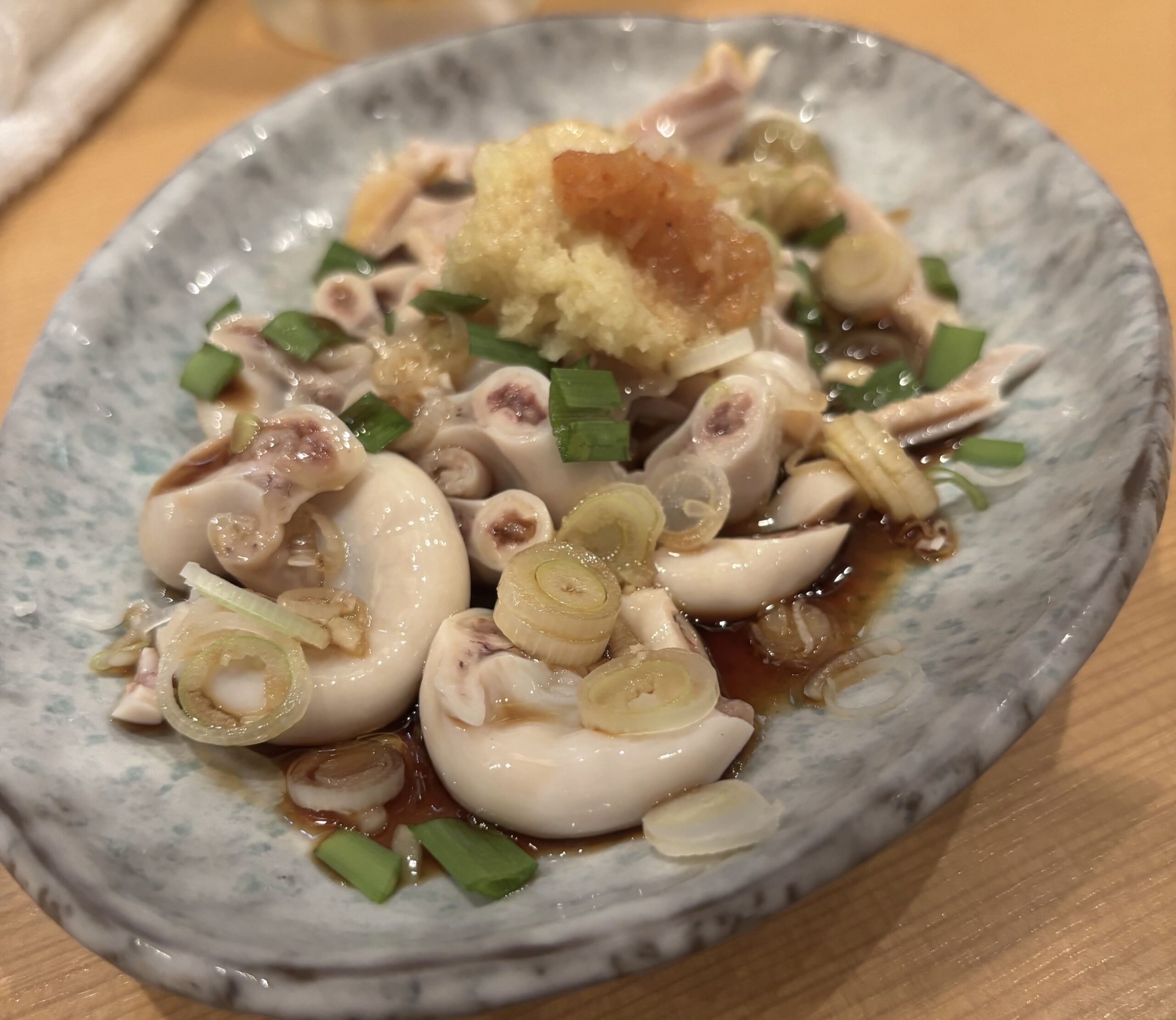 にんにくと生姜で食欲増しましガツ、コブクロ刺
