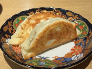 焼き色が食欲をそそる、肉汁たっぷりの看板メニューの焼き餃子。