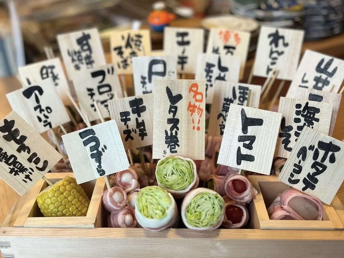 彩り豊かな「野菜巻」など、目でも楽しめる串料理の数々。