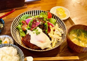 彩り鮮やかでボリューム満点、手作りのハンバーグ定食