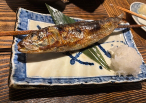 皮はパリッと身はふっくらと仕上げた、理想的な囲炉裏焼きの魚