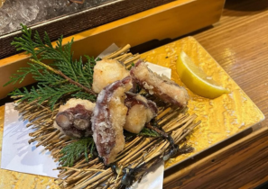 福岡市南区の野間エリアに店を構える「五島丸」は、その名の通り長崎県・五島列島の豊かな海の幸を存分に楽しめる鮮魚居酒屋。豪快に焼き上げられた魚の頭焼きや、外はサクッと中はジューシーな揚げ物など、素材の個性を引き出す職人の技が光る逸品ばかり