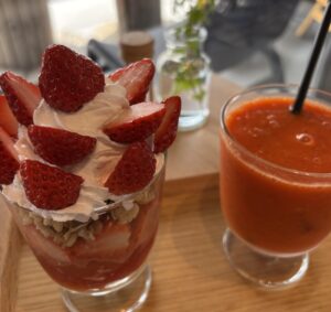 旬の苺を贅沢に使ったパフェと濃厚な特製スムージー