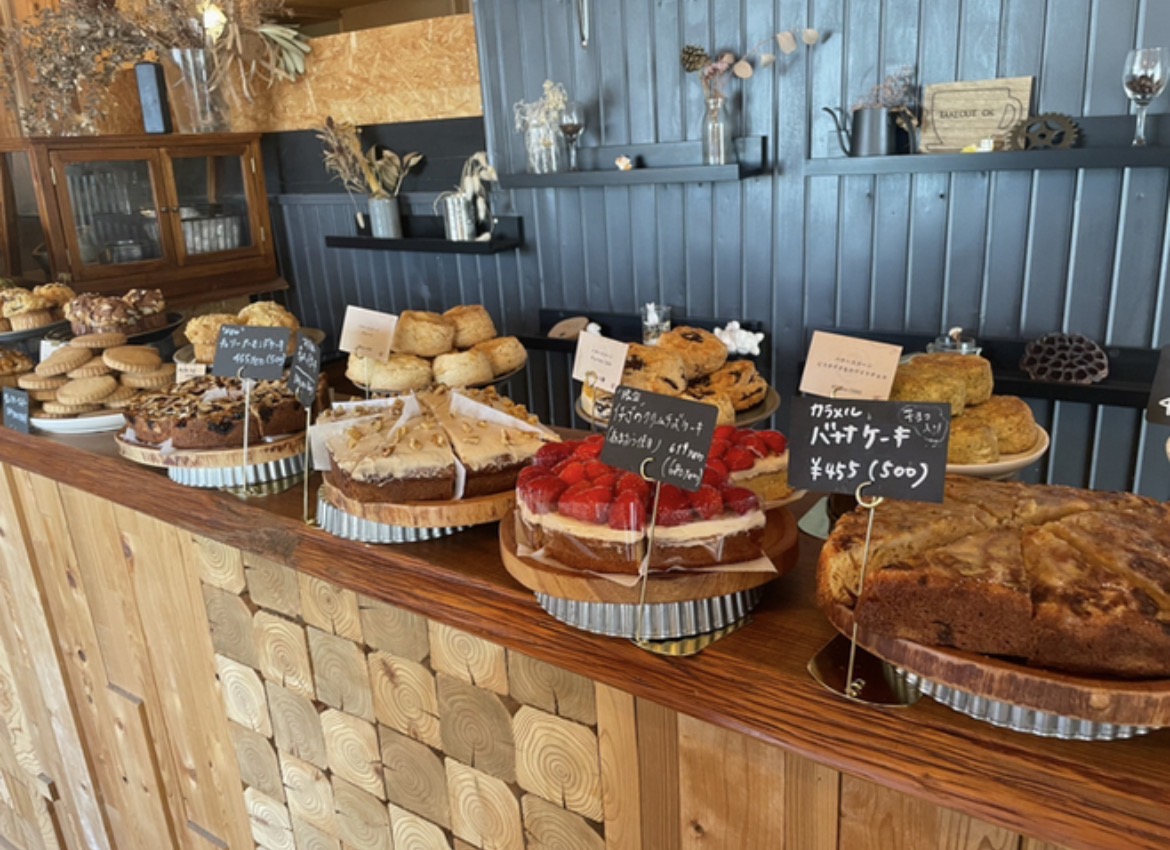 ずらりと並ぶ、種類豊富な手作りマフィンや焼き菓子たち。