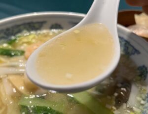 プリプリの海老と野菜がたっぷり入った豪華な海老そば