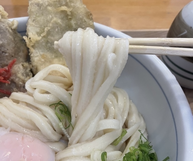 丁寧に盛り付けられた、艶やかでコシの強いうどん。