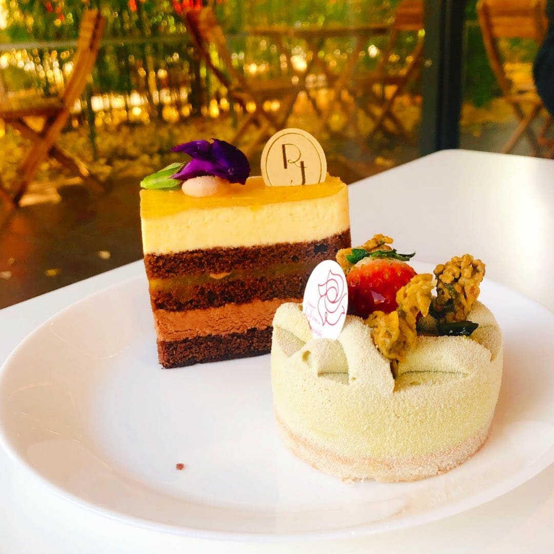 ショーケースには色とりどりの繊細なケーキが並びます。