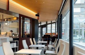 大きな窓から光が差し込む、開放的で清潔感溢れる店内。