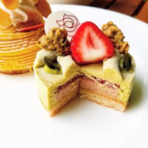 東京都葛飾区の亀有香取神社という由緒ある境内に店を構える「ラ・ローズ・ジャポネ」は、パティシエの世界大会で優勝・準優勝という輝かしい実績を持つ五十嵐シェフの銘店です。葛飾区の地元の方々はもちろん、その味を求めて遠方からも多くのファンが訪れるこのお店の魅力は、何と言っても細部までこだわり抜かれたケーキのクオリティにあります。ショーケースを彩る色鮮やかなプティ・ガトーの数々は、どれも厳選された素材の風味を最大限に引き出した芸術品のような逸品ばかりです。