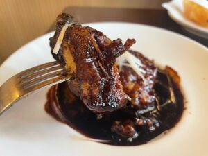 漆黒のソースが食欲をそそる骨なしスペアリブの黒酢豚