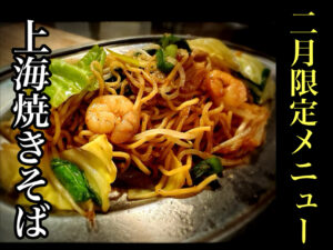 2月限定メニューに「上海焼きそば」が登場します!海鮮の旨味と甘みのある焼きそばです!