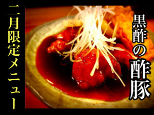 2月限定メニューに「黒酢の酢豚」が登場します!深いコクの酢豚。人気です!