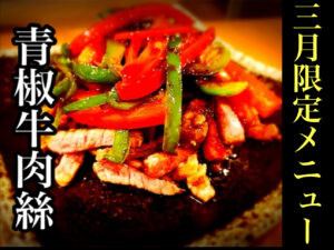 3月限定メニューに牛肉の青椒肉絲「青椒牛肉絲」が登場します。