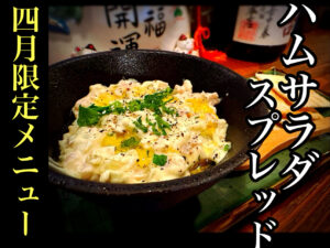 4月限定メニューの「ハムサラダスプレッド」みじん切りのハムや野菜をクリームチーズベースの調味料と合わせ、クラッカーにのせて食べる料理です!ファーストオーダーにピッタリ!
