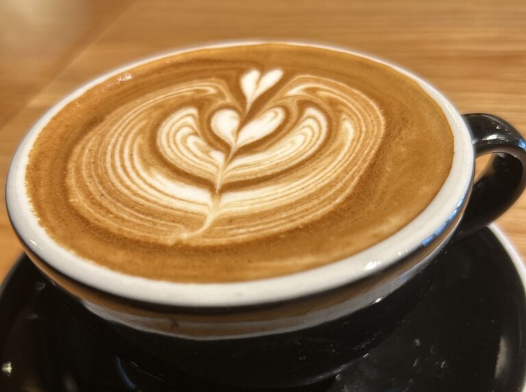美しいラテアートが施された、香り豊かなカフェラテ