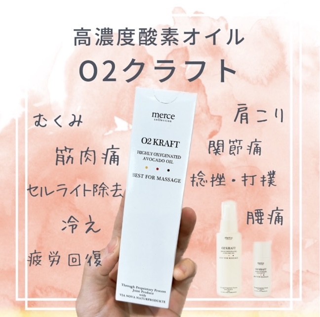ドイツ生まれの高濃度酸素オイル 『O2クラフト』 当院では施術でもこちらのオイルを使用しております♪ 【こんな人におすすめ】 □首肩こり、頭痛でお悩み □冷え、むくみが気になる □筋肉痛、関節痛 □日常的に運動している方の疲労回復に □お体の皮膚トラブルでお悩み □ダイエット中・局部やせしたい □日焼け後のケアに ...