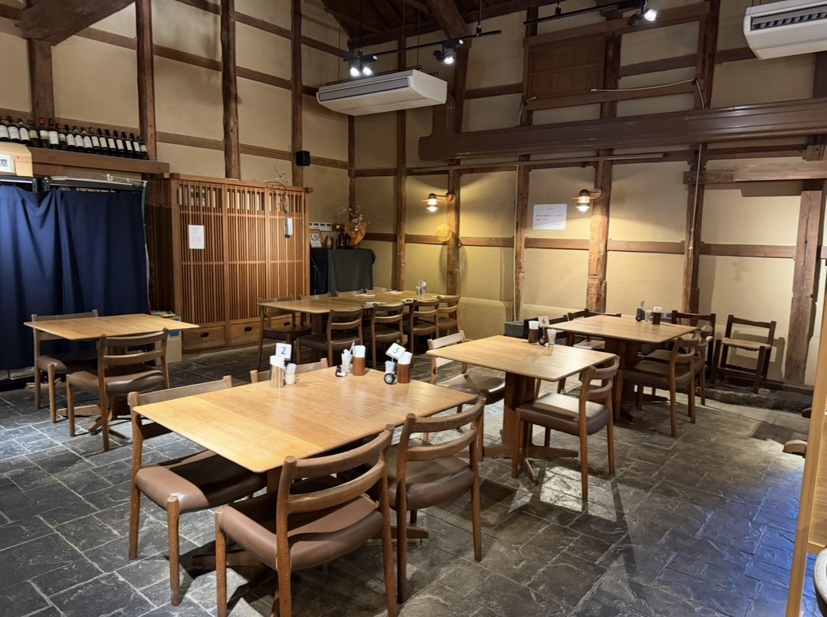 蔵を改装した落ち着きのある空間で開放感のあるテーブル席