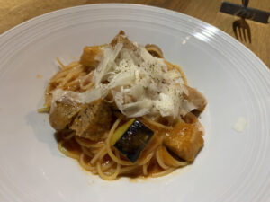 地元の新鮮なタコを贅沢に使った、彩り豊かなパスタ