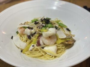 料理の主役は、目の前の海で獲れたばかりの新鮮な魚介類です。特に下津井名産のタコをはじめ、その時期一番美味しい地魚をイタリアンの技法で一皿一皿丁寧に仕上げています。素材の持ち味を最大限に引き出したパスタやメイン料理は、訪れる人の心を満たす逸品ばかりです。倉敷市下津井の穏やかな波音をBGMに、刻一刻と表情を変える海を眺めながら過ごす時間は、まさに至福のひととき。記念日のディナーや、大切な人を連れてのドライブランチにも最適です。美しい景色と洗練された料理、そして温かいおもてなしが、日常を忘れる特別な休日を演出してくれます。