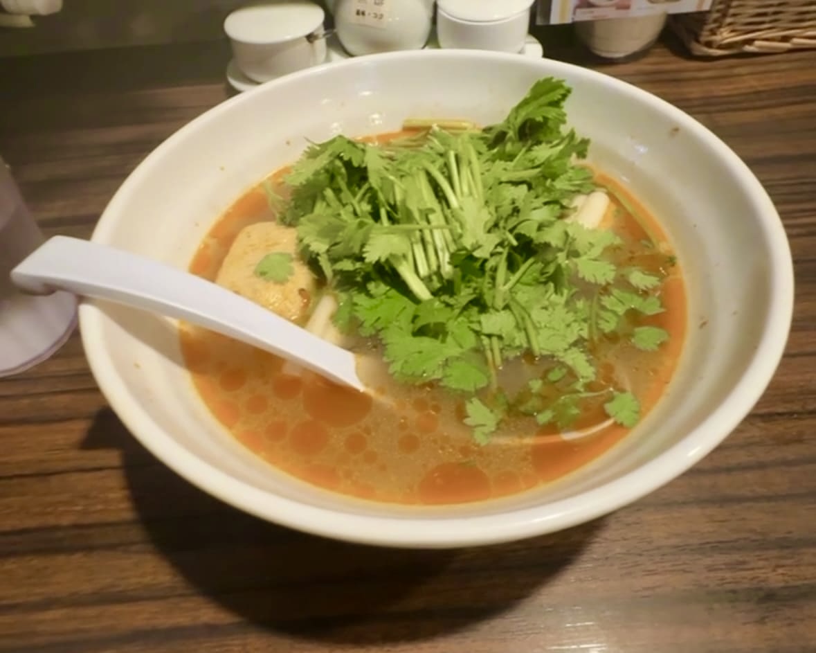 草津市の農家直送パクチーがたっぷり載った麻辣湯