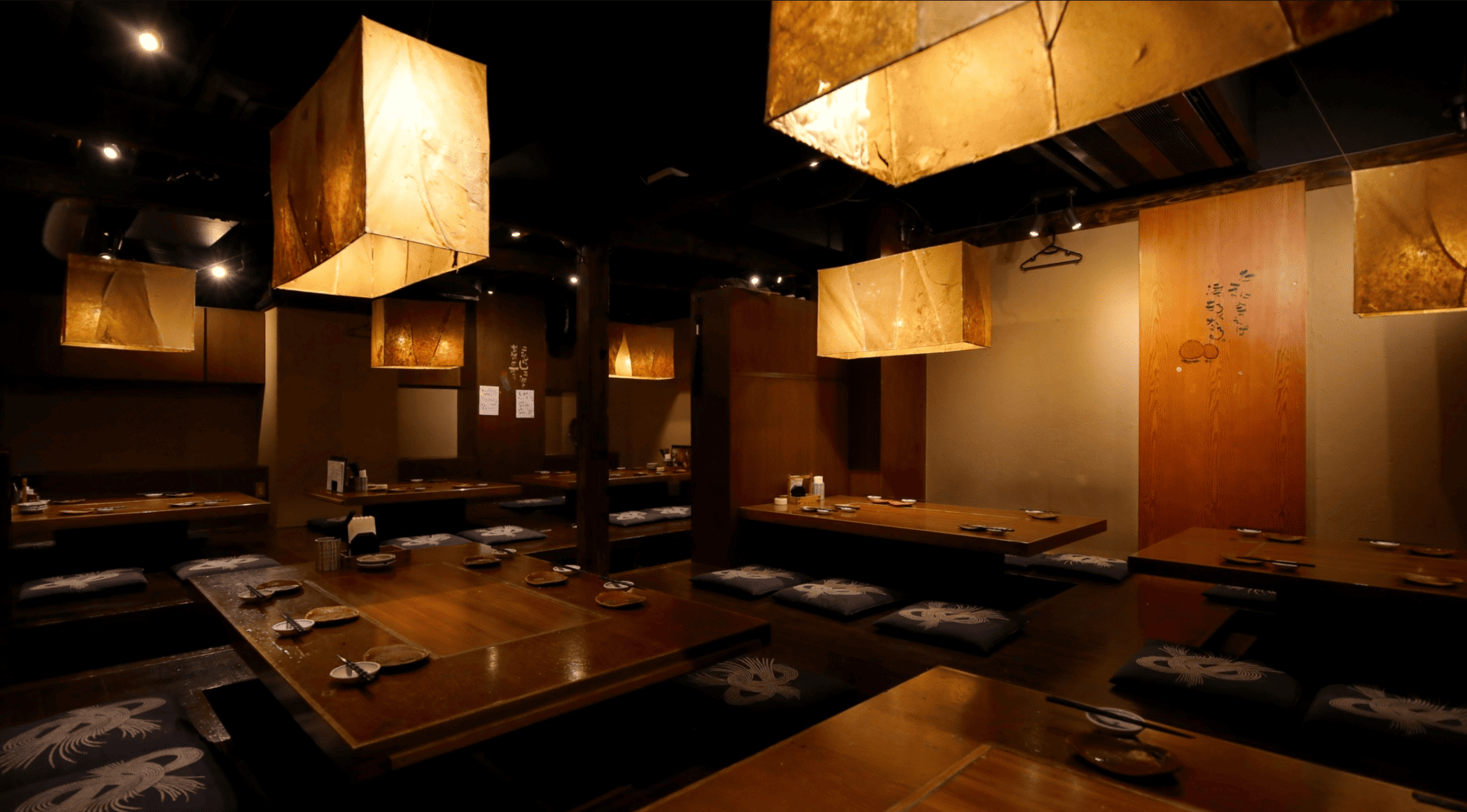 落ち着いた和の雰囲気漂う、広々とした掘りごたつの店内