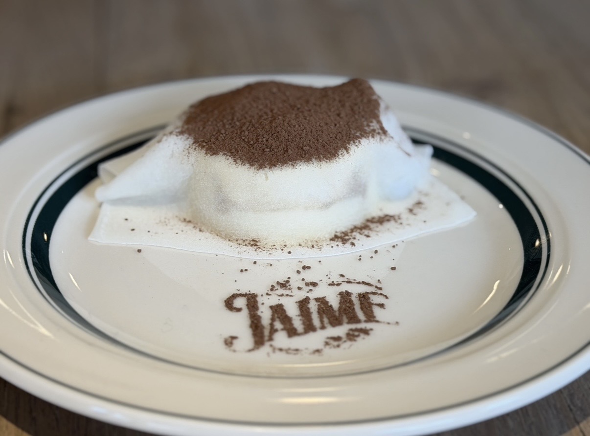 東京都港区赤坂の静かな通りに佇む「JAIME」は、パリの街角を思わせる洗練された空気感のカフェ&バー。名物は、真っ白な求肥に包まれた「JAIMEティラミス」。フォークを入れると、もちもちの求肥の中から濃厚なマスカルポーネとコーヒーの香りが広がり、印象に残る一皿です。都会の中心にありながら落ち着いた空間で、自分へのご褒美時間を過ごしたいときにちょうどいい一軒。