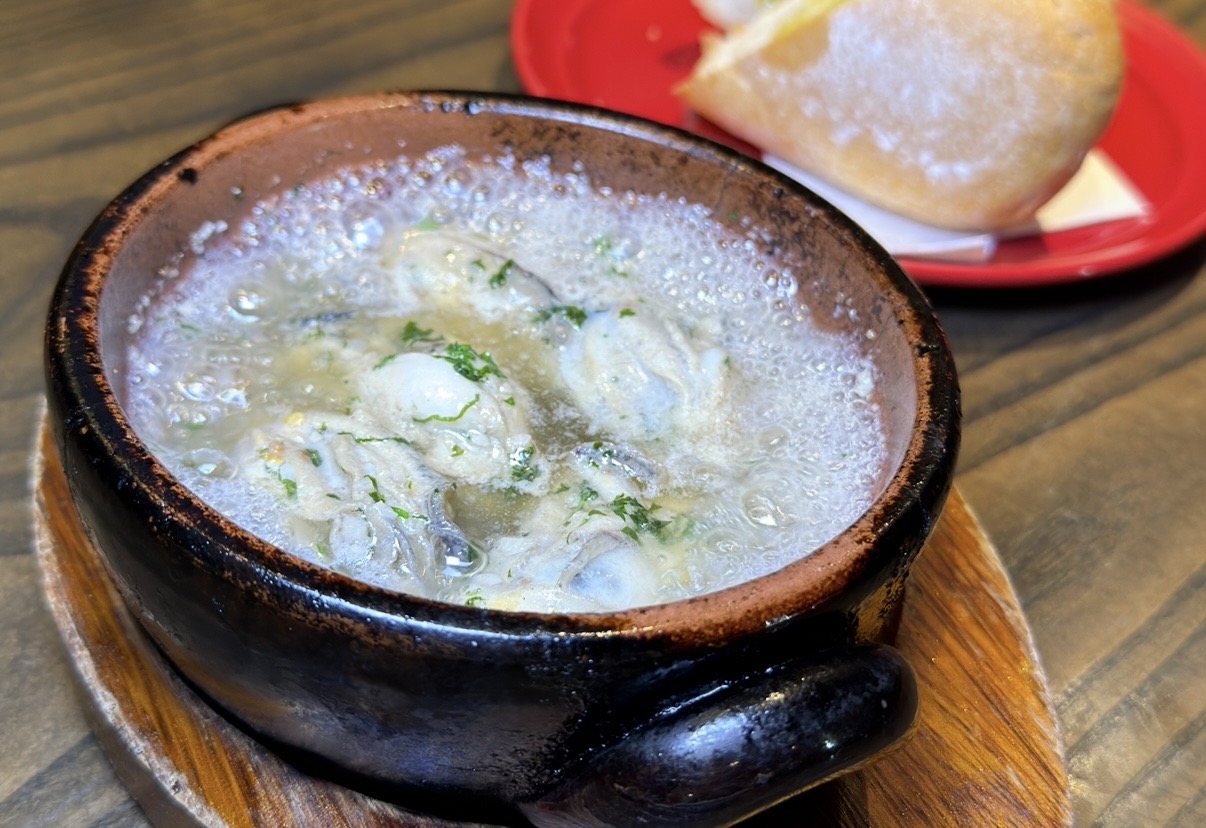 牡蠣の旨味が溶け出した、熱々で香り豊かなアヒージョ