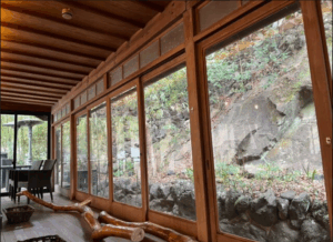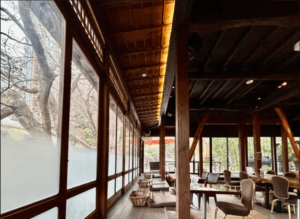 大阪府箕面市の観光名所である箕面大滝へと続く滝道沿いに、歴史の重みを感じさせる「蕎麦処 kajikasou minoh」はあります。大正時代に建てられた元旅館をリノベーションしたこの空間は、当時の面影を色濃く残す木造建築の美しさと、現代的な洗練が見事に融合しています。窓の外に広がる大阪府箕面市の四季折々の自然を眺めながら過ごす時間は、訪れる人々に日常の喧騒を忘れさせ、心からの安らぎを与えてくれます。