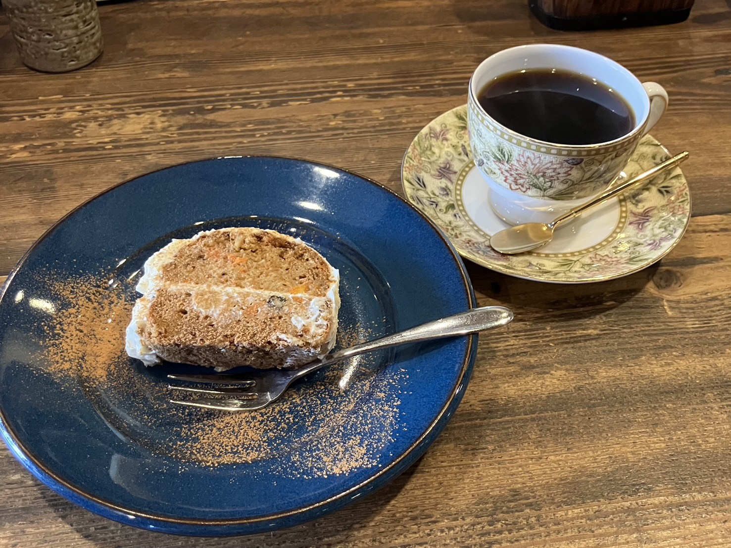 シナモンの香りが漂う自家製キャロットケーキと丁寧に淹れられた珈琲