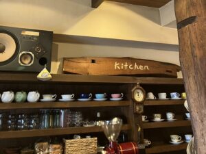様々なカップやアンティークな時計が並ぶ、温もりあふれる店内