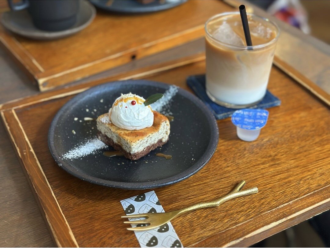濃厚なベイクドチーズケーキとカフェラテで楽しむ午後のひととき