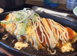 鉄板で提供される熱々とろとろの卵料理