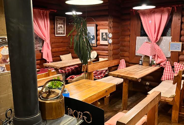 ログハウスの温もりと薪ストーブの香りに包まれる至福の喫茶店