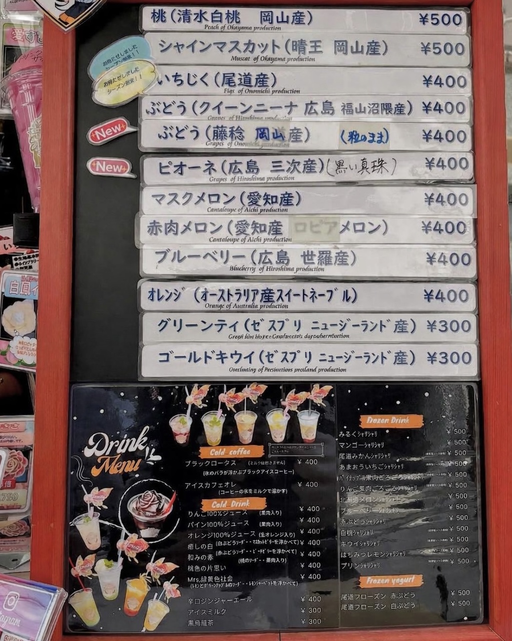 産地直送のフルーツが並ぶ本日のトッピングメニュー。