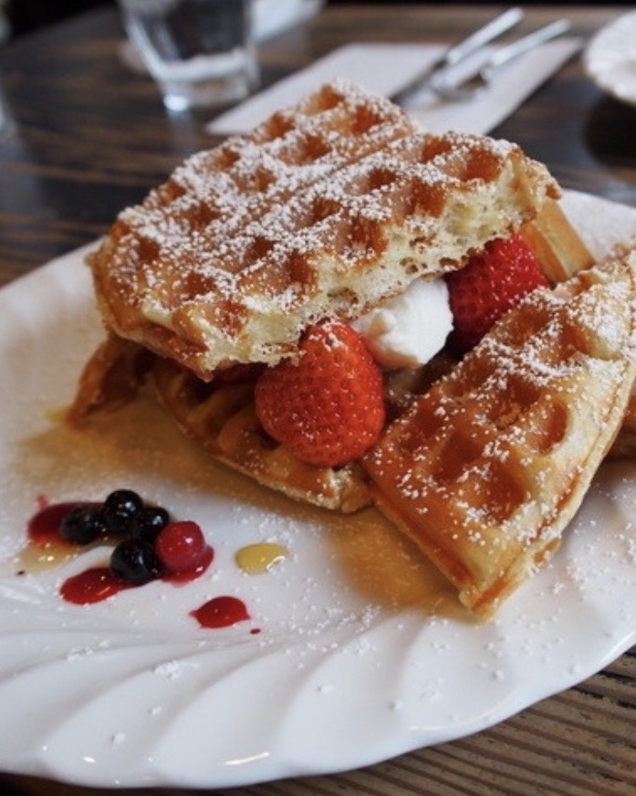 旬のいちごを贅沢に挟んだ、見た目も華やかなワッフル。