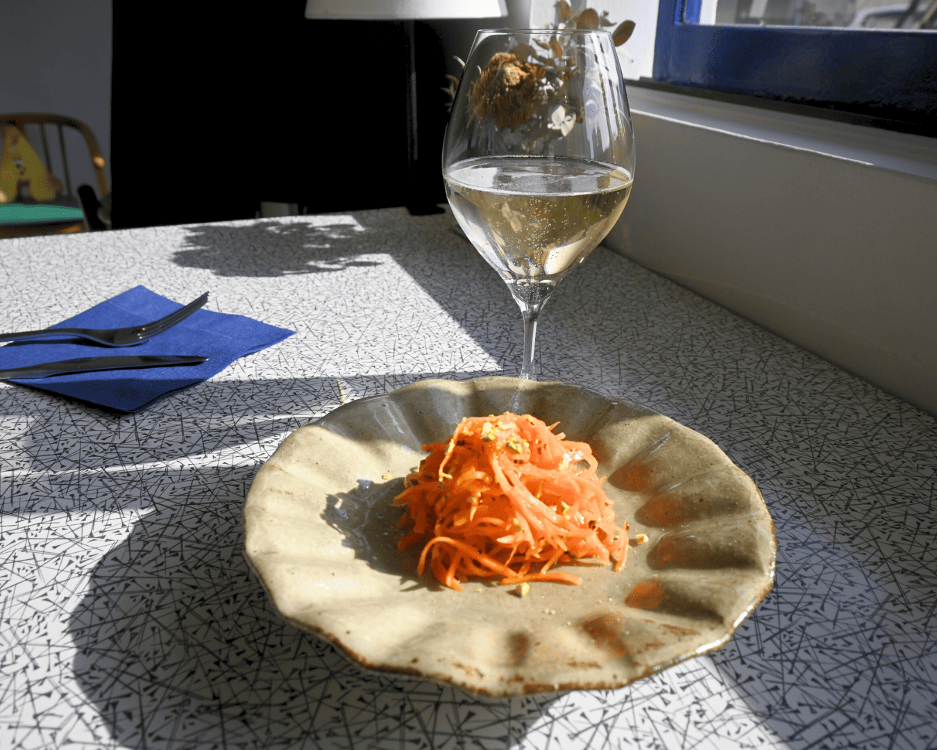 シンプルなのに完成度が高く、特にキャロットラペとキレのいいシードルの組み合わせが最高で、「ああ、こういう時間が欲しかった」と自然に肩の力が抜けました。