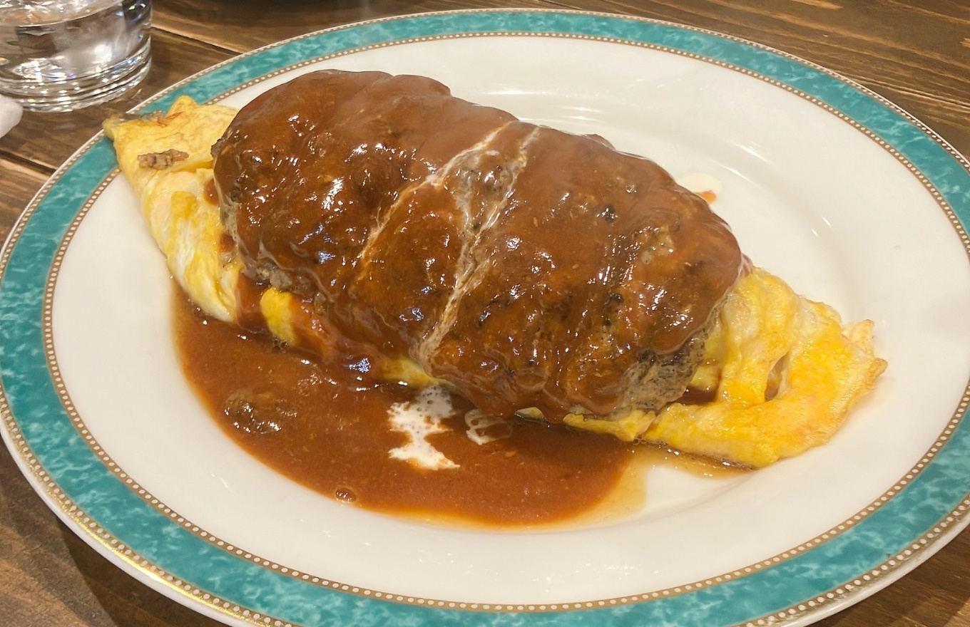 ふわふわ卵にハンバーグが乗った贅沢なオムライスです。