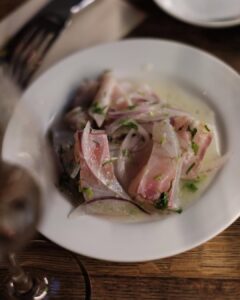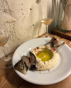 彩り豊かなタコとアボカドの前菜とナチュラルワイン