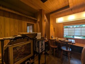 木戸をくぐり店内に入ると、温かみのある木材と和紙の照明が調和した、洗練された空間が広がります。