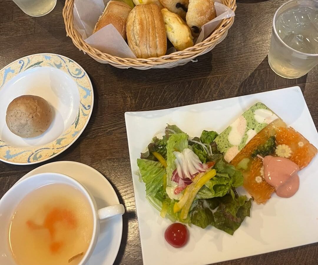 彩り豊かな前菜とパスタが並ぶ大満足のランチセット